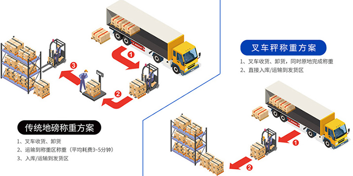 重量測(cè)量在商品和原材料的供應(yīng)中非常重要。在物流園區(qū)、生產(chǎn)車間、倉(cāng)儲(chǔ)場(chǎng)所等區(qū)域,常常能看到叉車忙碌的身影。在叉車搬運(yùn)、堆垛貨物過(guò)程中,貨物的重量具有很重要的意義。通常叉車會(huì)將貨物搬運(yùn)到地磅或臺(tái)秤上,進(jìn)行計(jì)量稱重后,再搬運(yùn)至其他位置,這樣的稱重方式雖精確,卻效率不高。