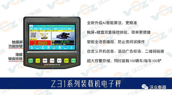 Z31系列裝載機(jī)秤是沃眾衡器新推出的全觸屏、全語(yǔ)音、超大容量的AI智能裝載機(jī)秤,稱重操作更簡(jiǎn)單!
